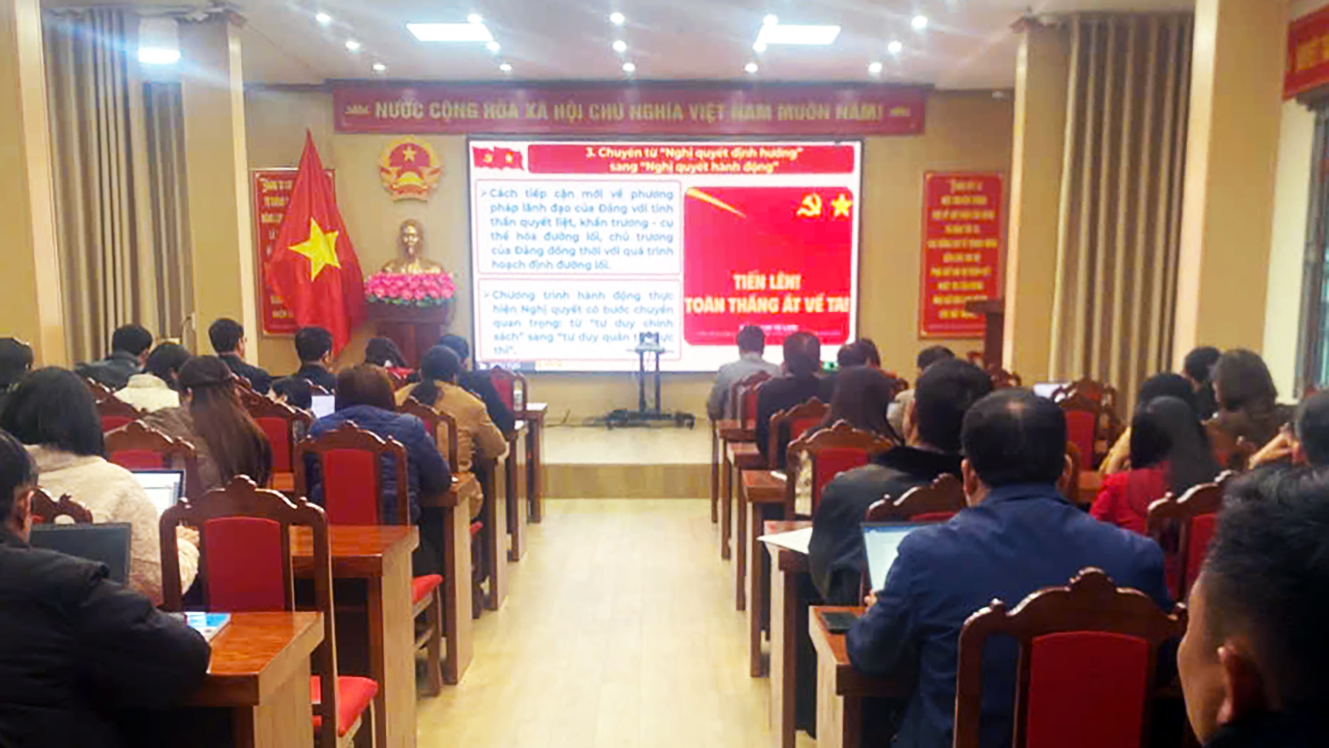 Cán bộ, đảng viên xã biên giới Pà Vầy Sủ hướng về phiên bế mạc Đại hội XIV của Đảng
