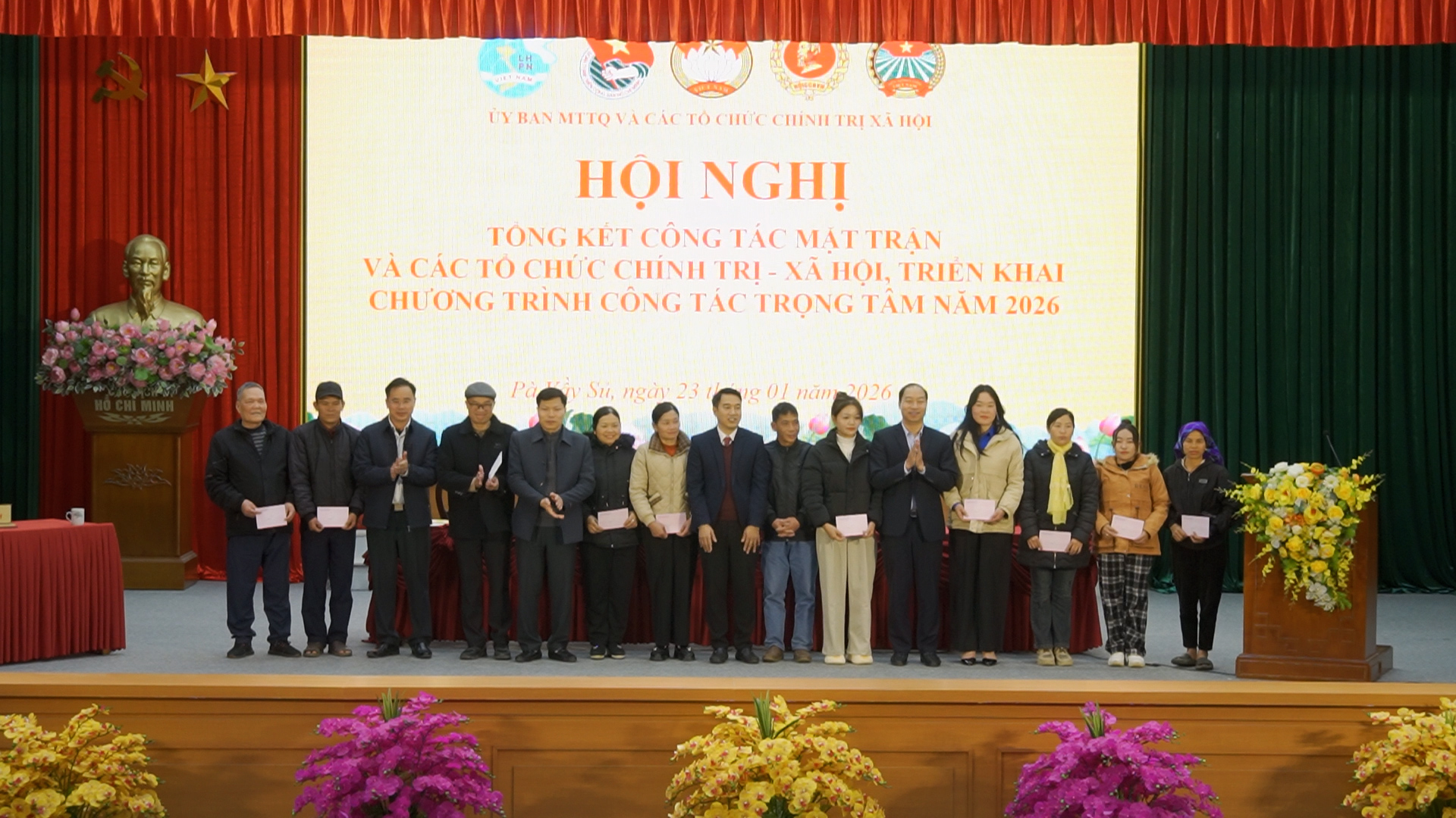 Chiều ngày 23.1.2026, Ủy ban MTTQ và các tổ chức chính trị xã hội xã Pà Vầy Sủ tổ chức hội nghị tổng kết công tác Mặt trận và các tổ chức chính trị xã hội năm 2025, triển khai nhiệm vụ năm 2026. Dự và chỉ đạo hội nghị có các đồng chí: Tô Quang Trọng – Phó Bí thư Thường trực Đảng ủy; Trần Đức Bảo – Phó Chủ tịch HĐND xã; Nguyễn Duy Khương – Phó Chủ tịch UBND xã. Đồng chí Nguyễn Đức Xuân – Chủ tịch Ủy ban MTTQ Việt Nam xã, các đồng chí Phó Chủ tịch Ủy ban MTTQ Việt Nam xã, chủ trì hội nghị.