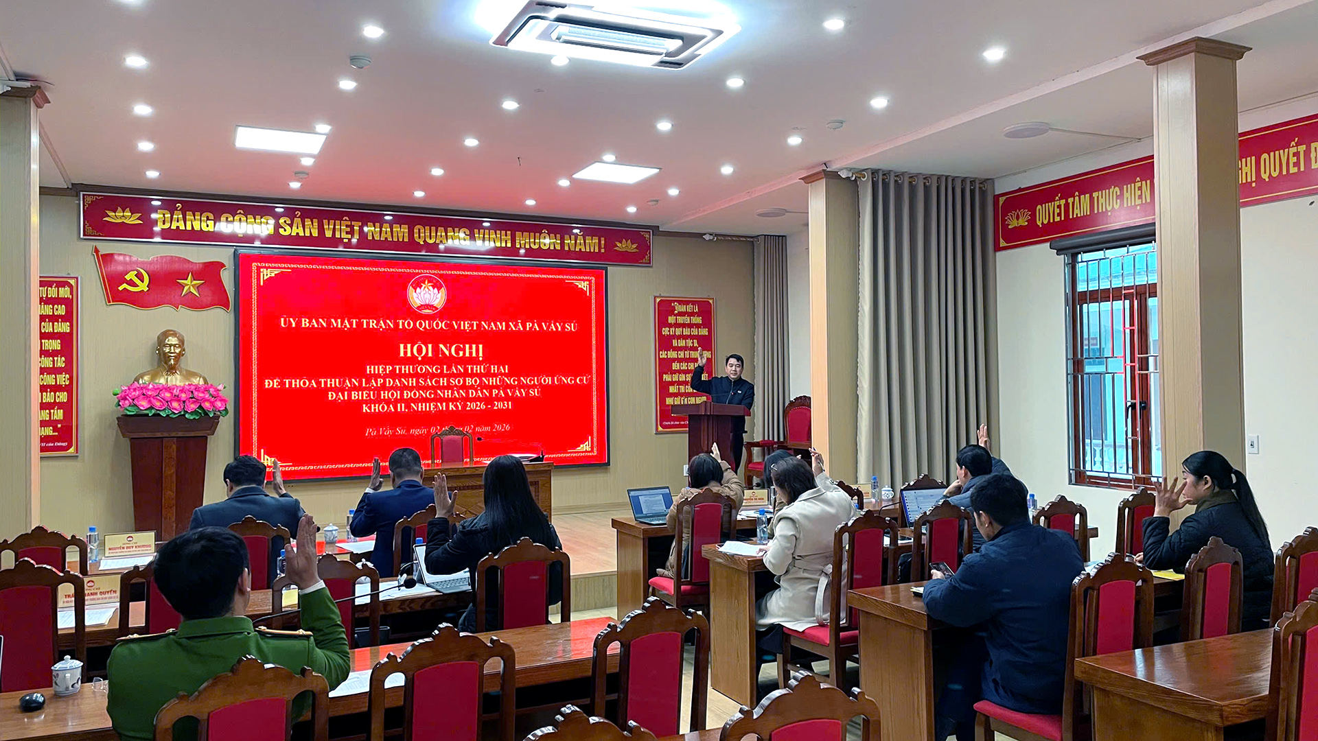 Sáng ngày 02/02/2026, Ban Thường trực Ủy ban Mặt trận Tổ quốc Việt Nam xã Pà Vầy Sủ đã tổ chức Hội nghị hiệp thương lần thứ hai nhằm thỏa thuận lập danh sách sơ bộ những người ứng cử đại biểu Hội đồng nhân dân xã khóa II, nhiệm kỳ 2026–2031. Đồng chí Nguyễn Đức Xuân – Chủ tịch UBMTTQ Việt Nam xã chủ trì hội nghị. Tham dự hội nghị có đồng chí Dương Việt Hùng – Phó Bí thư Đảng ủy, Chủ tịch UBND xã; đồng chí Trần Đức Bảo – Phó Chủ tịch HĐND xã; các thành viên Ủy ban bầu cử xã; đại diện các tổ chức chính trị – xã hội trên địa bàn.