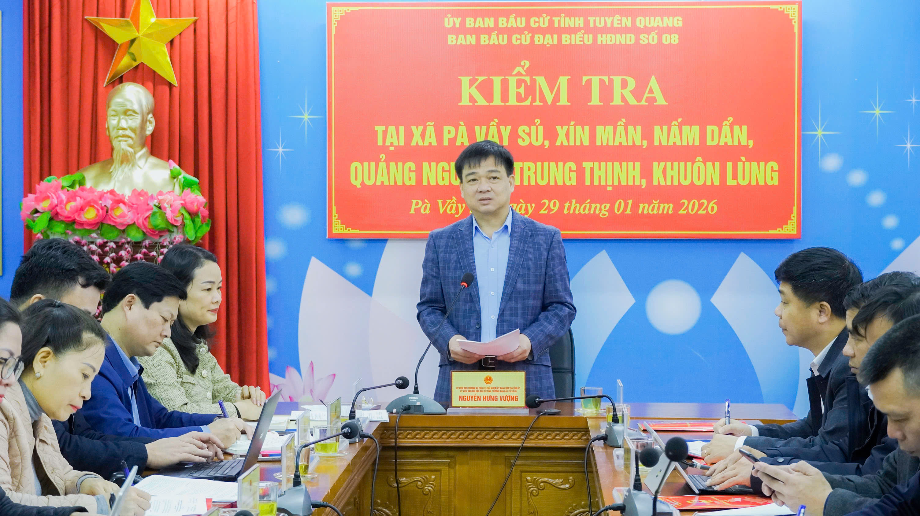 Ngày 29.01.2026, Ban bầu cử đại biểu HĐND số 8 do đồng chí Nguyễn Hưng Vượng, Uỷ viên Ban Thường vụ Tỉnh uỷ, Chủ Nhiệm Uỷ ban Kiểm tra Tỉnh uỷ, Uỷ viên Uỷ ban Bầu cử tỉnh làm Trưởng đoàn có cuộc làm việc nhằm nắm bắt kết quả chuẩn bị công tác bầu cử đại biểu Quốc hội khoá XVI và đại biểu HĐND các cấp nhiệm kỳ 2026-2031 tại các xã: Pà Vầy Sủ, Xín Mần, Nấm Dẩn, Quảng Nguyên, Trung Thịnh, Khuôn Lùng. Tham dự buổi làm việc có lãnh đạo một số sở, ngành là ủy viên ủy ban Bầu cử tỉnh.