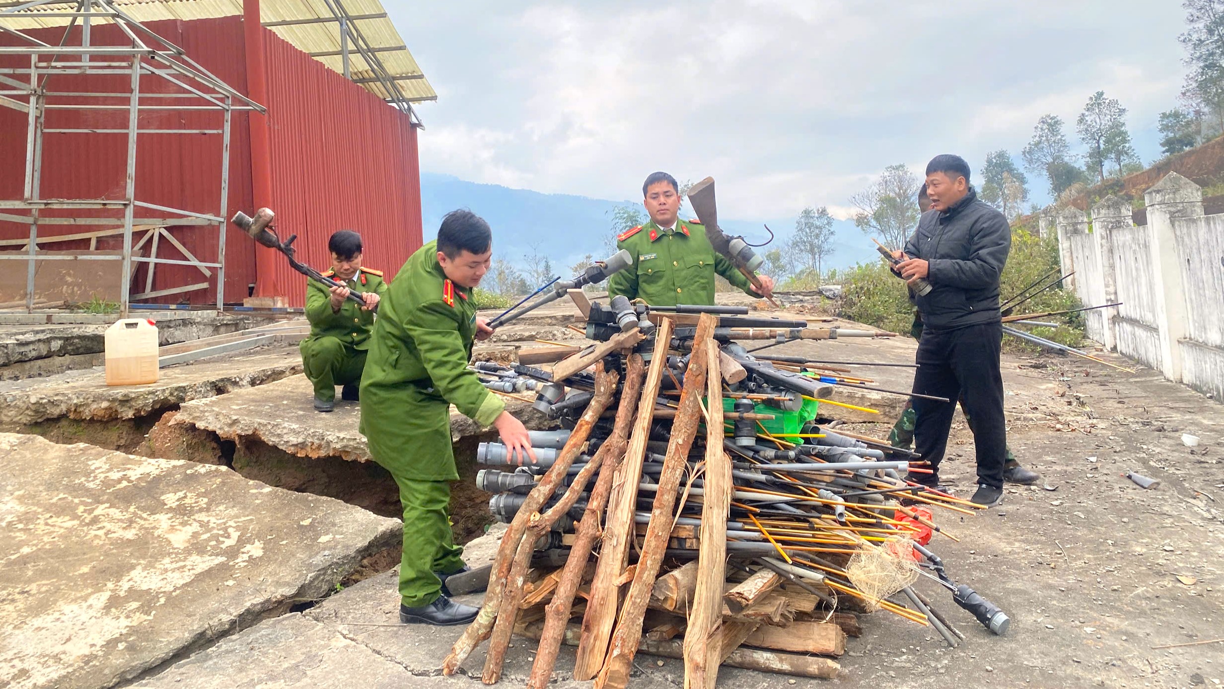 Sáng ngày 14.2.2025, Công an huyện Xín Mần phối hợp với các đơn vị có liên quan tổ chức tiêu hủy vũ khí, vật liệu nổ, công cụ hỗ trợ và pháo.
