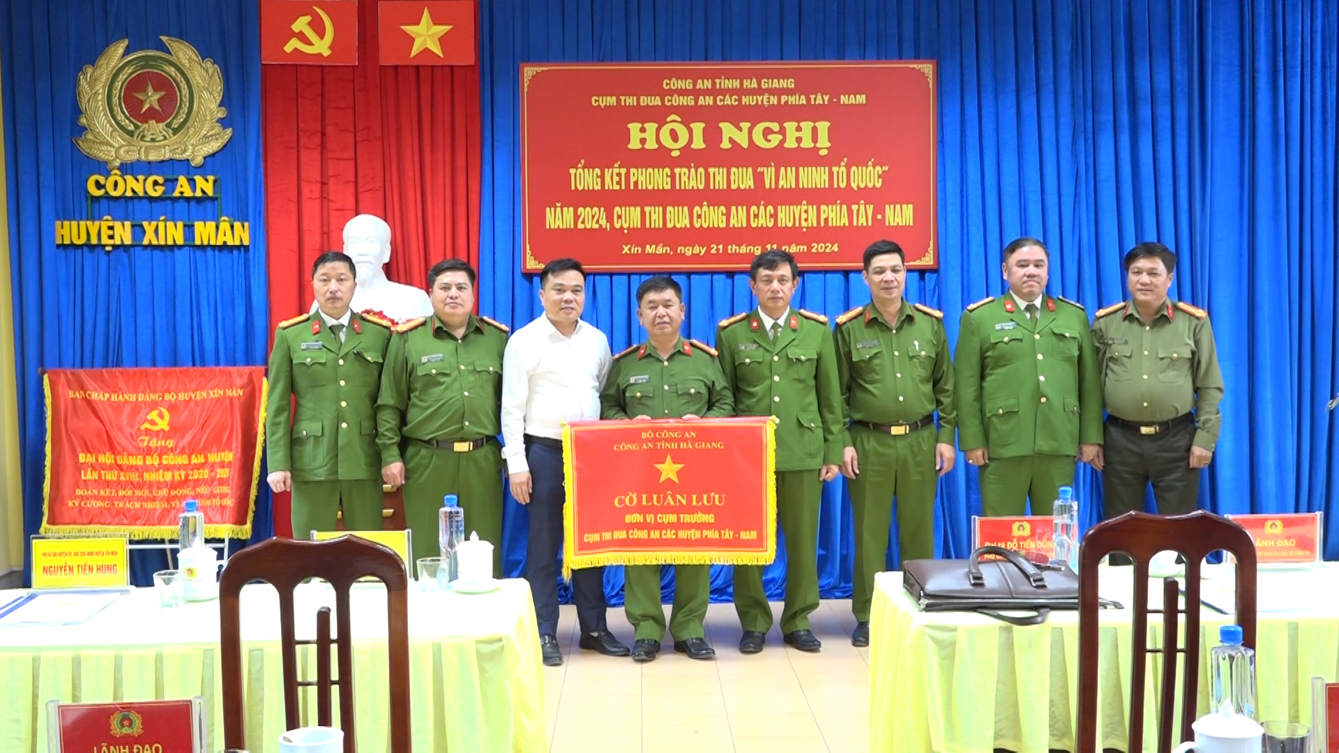 Ngày 21.11.2024, Cụm thi đua Công an các huyện phía Tây - Nam tổ chức Hội nghị tổng kết phong trào thi đua “Vì an ninh tổ quốc’’ năm 2024 tại huyện Xín Mần. Dự hội nghị có đồng chí Đại tá Đỗ Tiến Dũng, Phó Giám đốc Công an tỉnh; đồng chí Đỗ Thị Hương, Tỉnh ủy viên, Bí thư Huyện ủy; đồng chí Nguyễn Tiến Hùng, Phó Bí thư Huyện uỷ, Chủ tịch UBND huyện; lãnh đạo Công an các huyện trong Cụm.