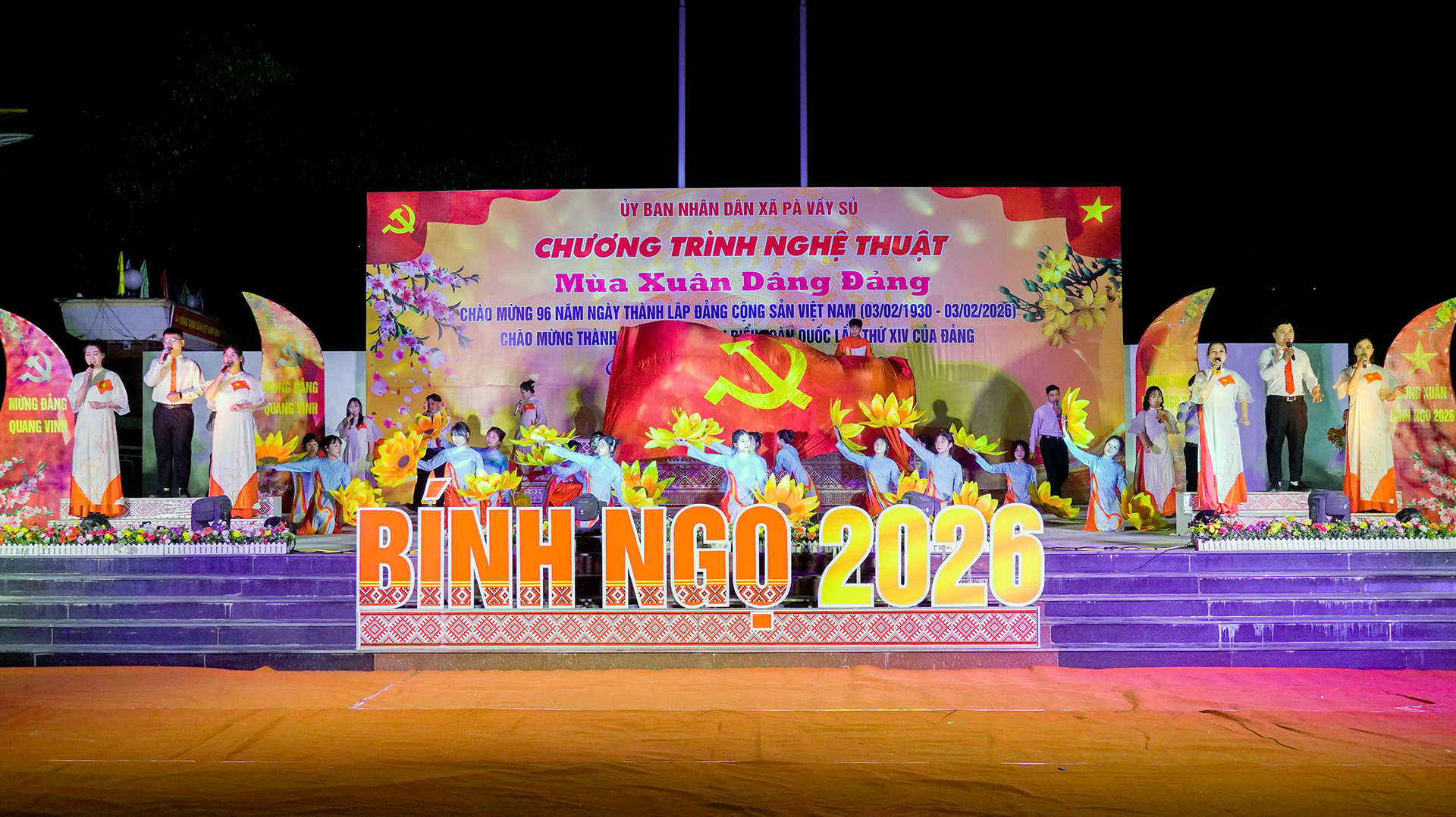 Trong không khí phấn khởi chào mừng 96 năm Ngày thành lập Đảng Cộng sản Việt Nam (3/2/1930 – 3/2/2026), chào mừng thành công Đại hội đại biểu toàn quốc lần thứ XIV của Đảng và mừng Xuân Bính Ngọ 2026, tối ngày 03.02.2026, tại Quảng trường trung tâm xã Pà Vầy Sủ, chương trình nghệ thuật đặc biệt “Mùa xuân dâng Đảng” đã được tổ chức trang trọng, ấm áp và giàu cảm xúc, để lại dấu ấn sâu đậm trong lòng đông đảo cán bộ, đảng viên và nhân dân. Dự Chương trình nghệ thuật có các đồng chí: Tô Quang Trọng, Phó Bí thư Thường trực Đảng ủy xã Pà Vầy Sủ; Lộc Văn Huy, Phó Bí thư Thường trực Đảng ủy xã Nấm Dẩn; lãnh đạo thường trực HĐND, UBND, UBMTTQ xã Pà Vầy Sủ, xã Xín Mần…